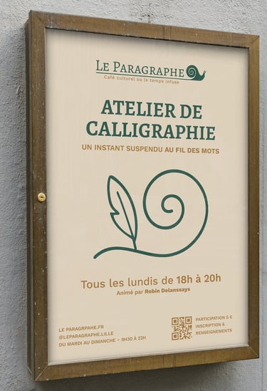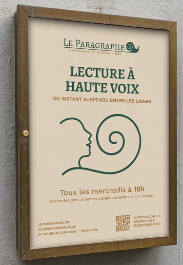 Création d’une identité visuelle complète pour Le Paragraphe, un café culturel fictif mêlant littérature, café et échanges artistiques.